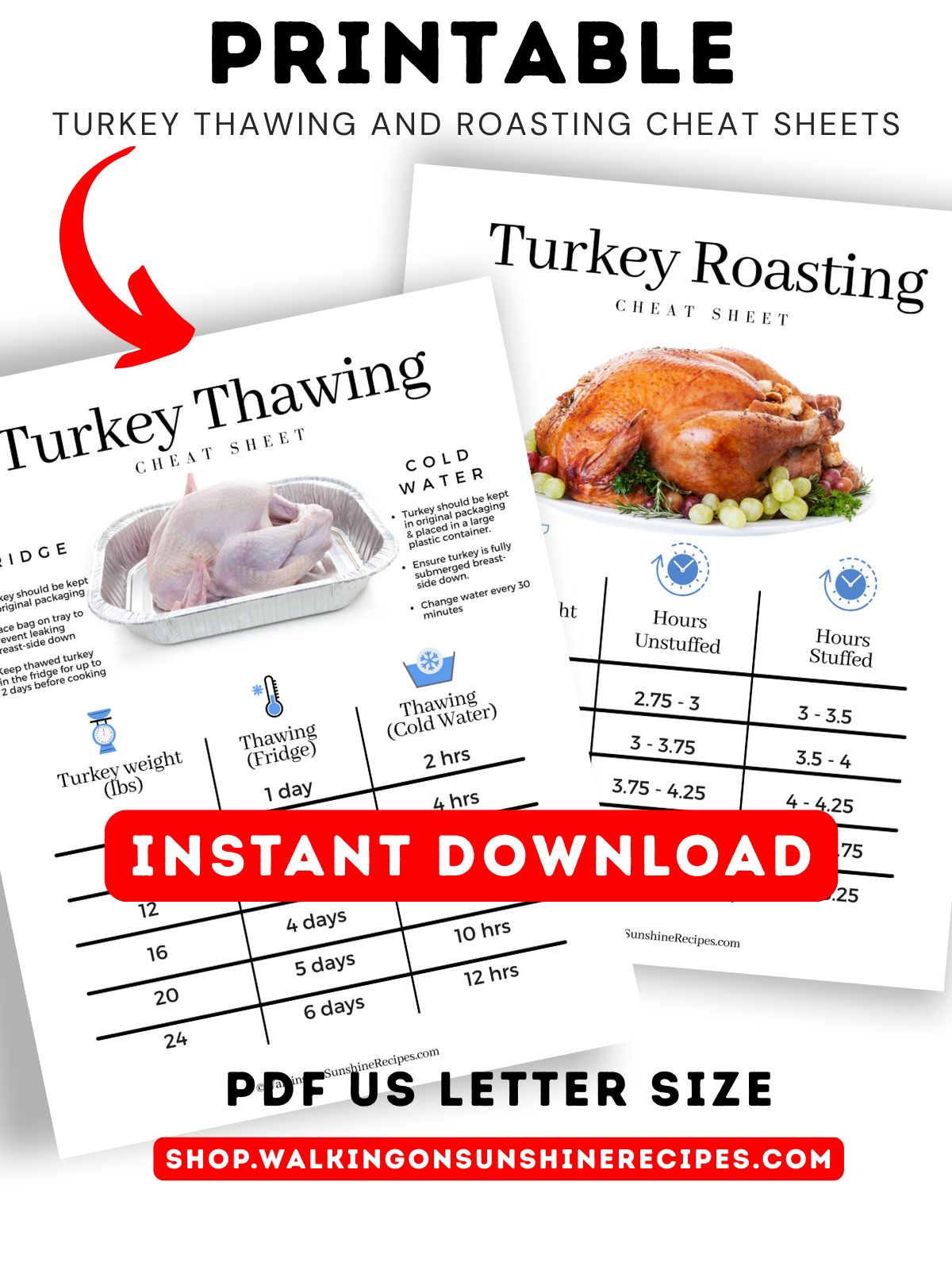 - This Turkey Thawing and Roasting Cheat Sheets will print nicely on standard white cardstock paper.